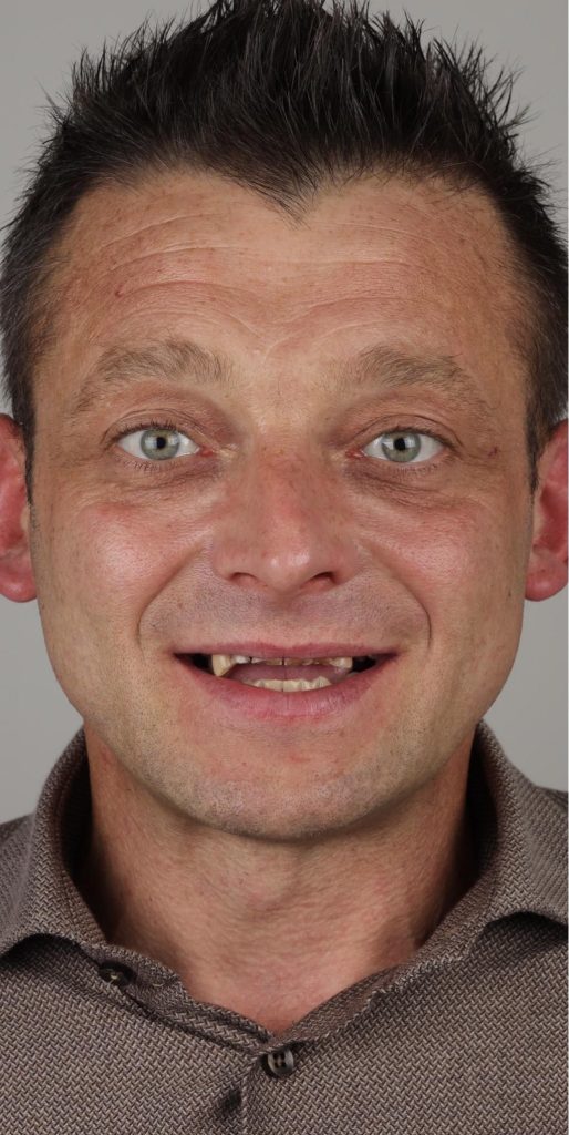 Następnie za pomocą nowoczesnych technologii cyfrowo zaprojektowaliśmy uśmiech, który Pan Bogdan mógł przymierzyć jeszcze przed rozpoczęciem właściwych zabiegów! Później została wykonana kompletna przebudowa zgryzu i uzupełnienie braków zębowych.