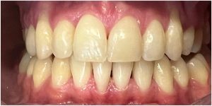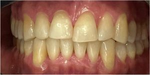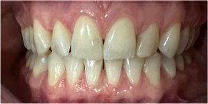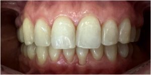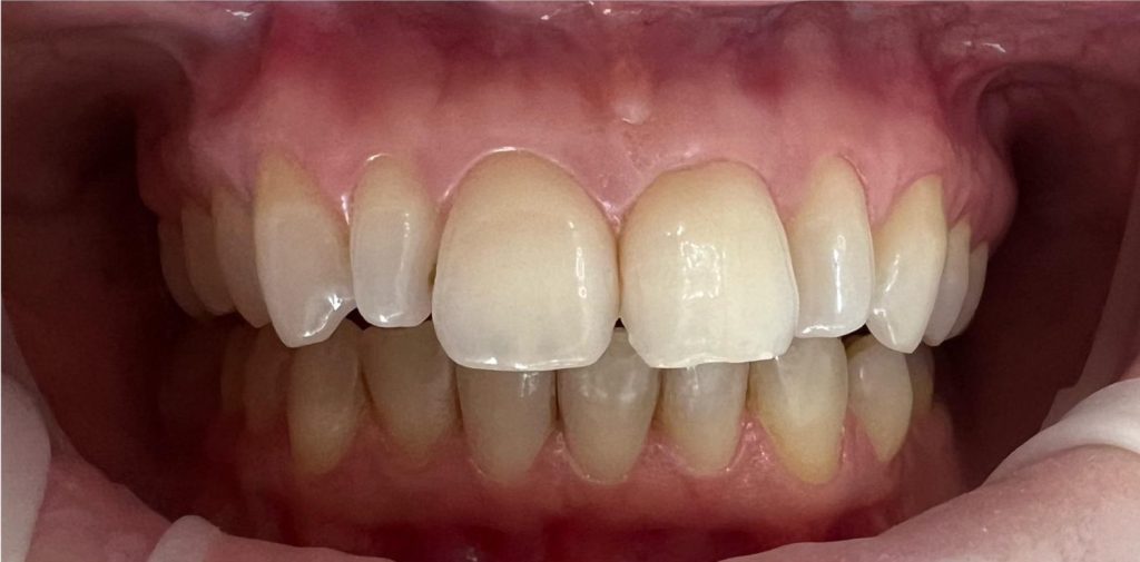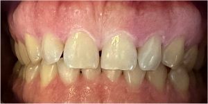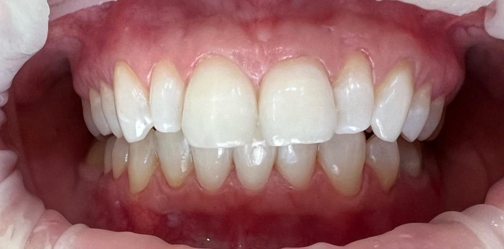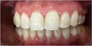 Efekt estetyczny został dopełniony przez wybielanie zębów i odbudowę kompozytową wykonaną przez dr Monikę Niewitecką.