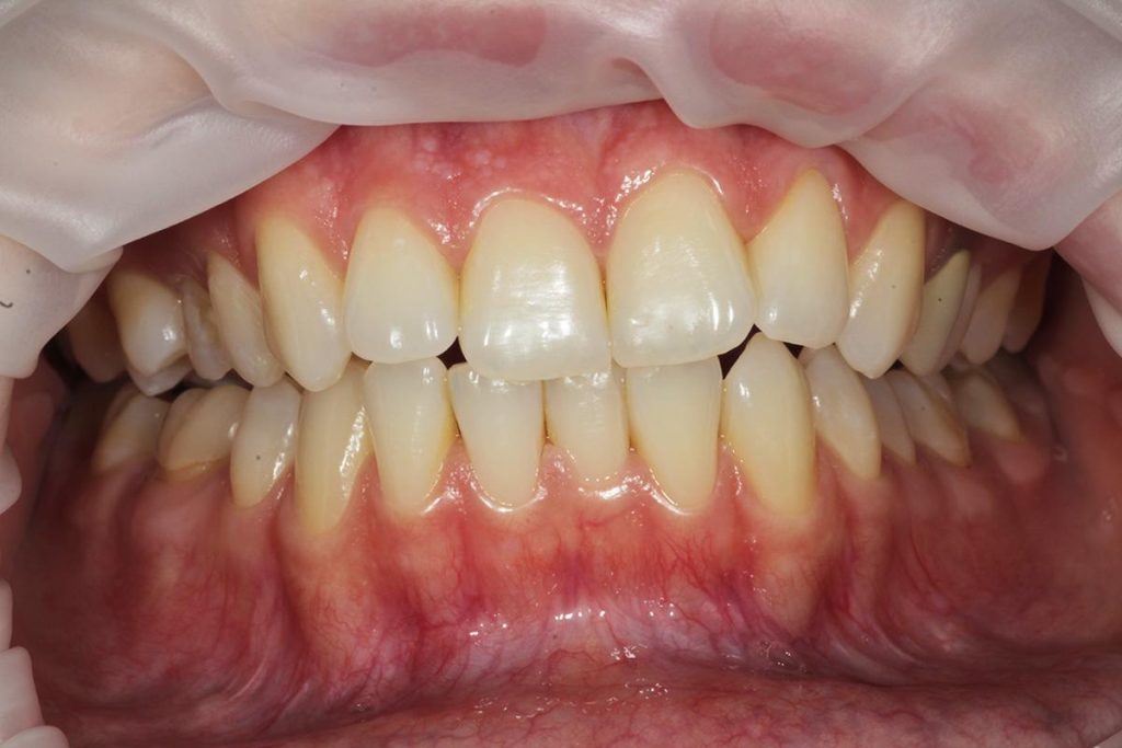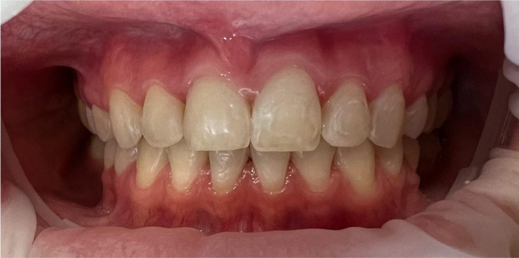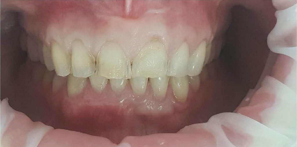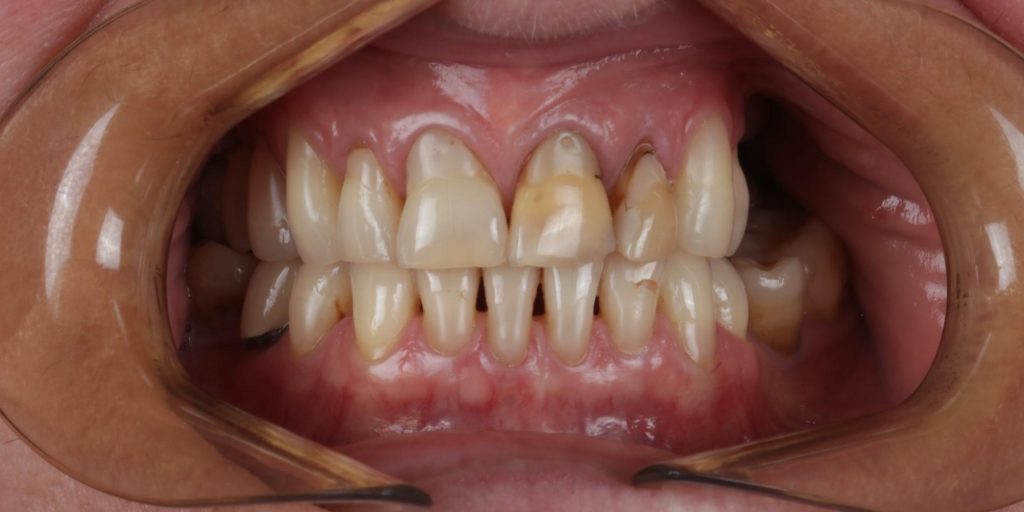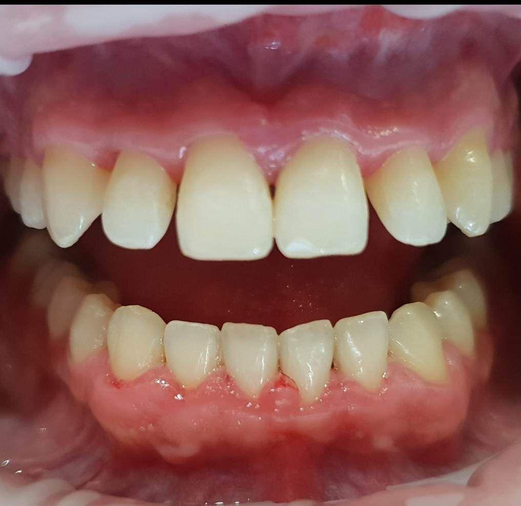 Pod kierownictwem lek. stom. Michała Badowskiego po wnikliwej analizie została przeprowadzona korekta dziąseł i pozbycie się nieestetycznych koron na podbudowie metalowej, eliminując tym samym nawracające stany zapalne dziąseł.