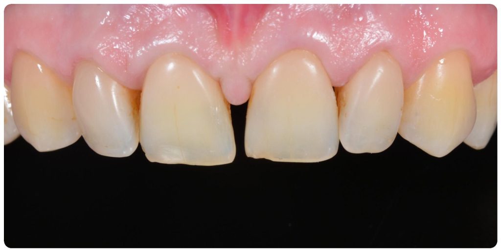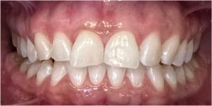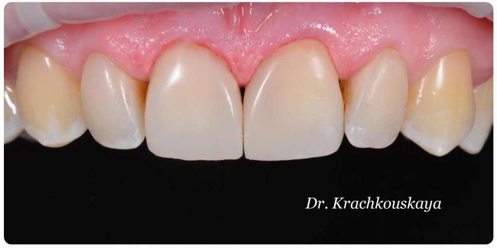 - Wykonaliśmy pełnoceramiczne licówki na górne jedynki.