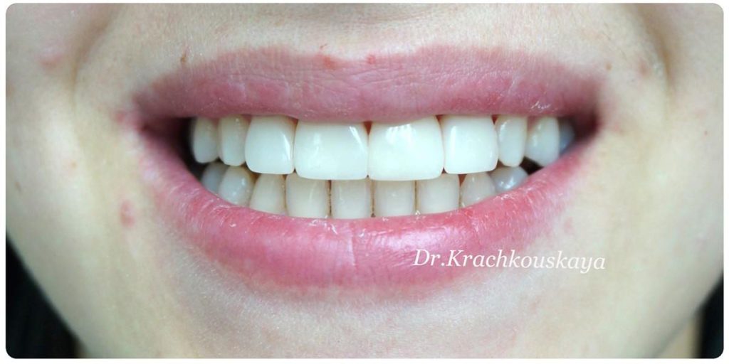 Całość została zaprojektowana w harmonii z twarzą i rodzajem uśmiechu naszej Pacjentki. Leczenie trwało 3 miesiące.
