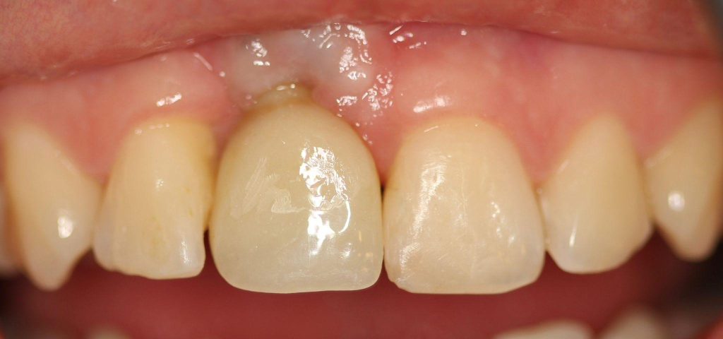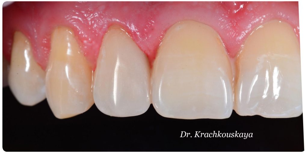 Dobrze przeprowadzony zabieg implantacji natychmiastowej daje efekty jak na pozostałych zdjęciach! Na każdym etapie leczenia mamy pełną kontrolę nad wszystkimi aspektami przyszłej odbudowy protetycznej – można powiedzieć, że zachowujemy to, co najtrudneijsze do odtworzenia, czyli kształt dziąseł.