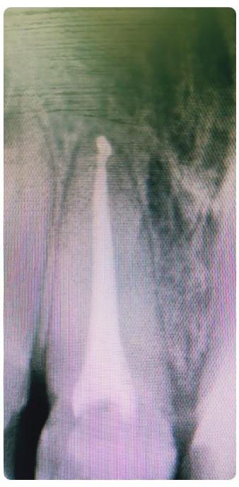 Następnie dr Joanna przekierowała Pacjentkę na kompleksowe działania endodontyczne do dr Aleksy Muchy.Po tym dr Joanna mogła przystąpić do działań protetycznych.