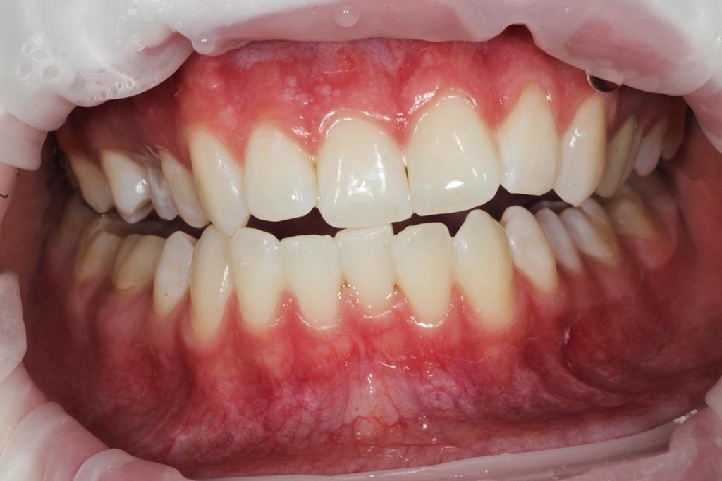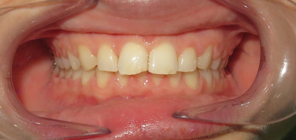 Pacjentka przeszła pełną rehabilitację zwarcia i zabiegi mikrochirurgiczne w zakresie dziąseł i kości u dr Joanny Zawirskiej Poły. Relaksacją mięśni zajęła się nasza fizjoterapeutka, Pani mgr Hanna Neścior.
